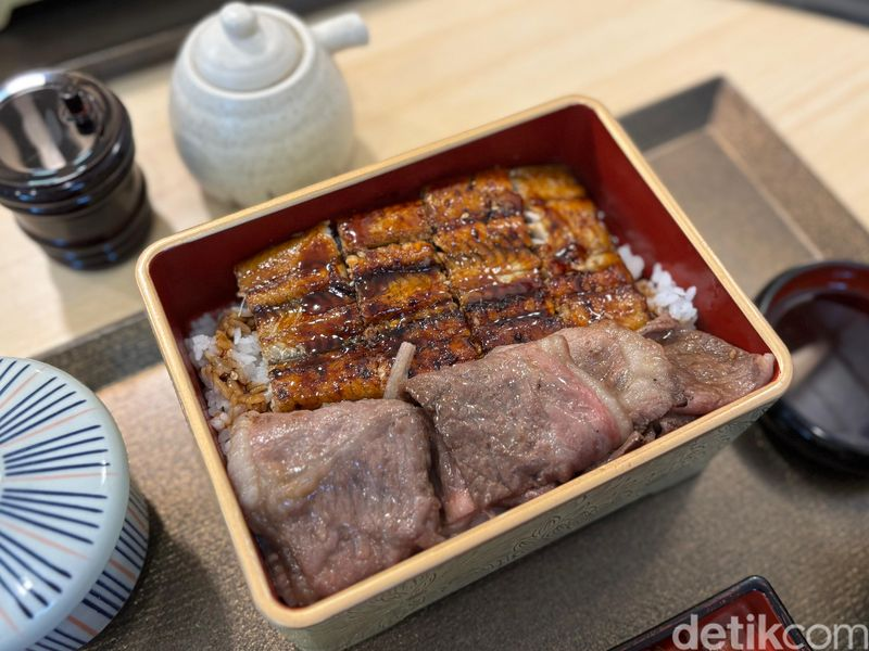 Ada juga varian unagi dengan campuran beef, yakni Unagi Wagyujuu seharga Rp 318.182. Untuk dagingnya menggunakan 80 gram daging wagyu A5 yang empuk, smokey, dan umami.